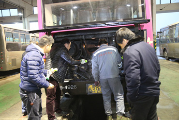在公司副總經理陳連忠?guī)ьI下,40余名檢查人員共分兩組,在臨平停?;睾蛡}前停?;?,連夜對所有回場的營運車輛安全系統(tǒng)進行全面排查整改。此次排查主要以車輛各類油電管線路、液化天然氣(LNG)儲(供)氣系統(tǒng)、發(fā)動機艙、高壓控制艙,以及客門應急開關、安全錘、滅火器等車載安全設施的技術性能為排查重點。檢查中,陳總指出:要有重點、有針對性地開展排查工作,加強對老舊車輛、油電混動車輛電管線路老化、不規(guī)范布線等隱患的排查,完善各類車載安全設施,對排查中發(fā)現的各類隱患及時消除,嚴禁隱患車輛上路運行;同時,要落實好安檢“三負責”制度,做好排查和整改內容的臺賬記錄,確保整個安全排查執(zhí)行率達到100%。