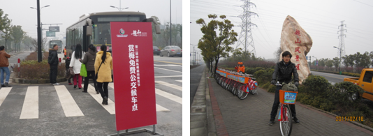 ? 賞梅免費公交深受游客歡迎????? ????????公共自行車臨時租借點