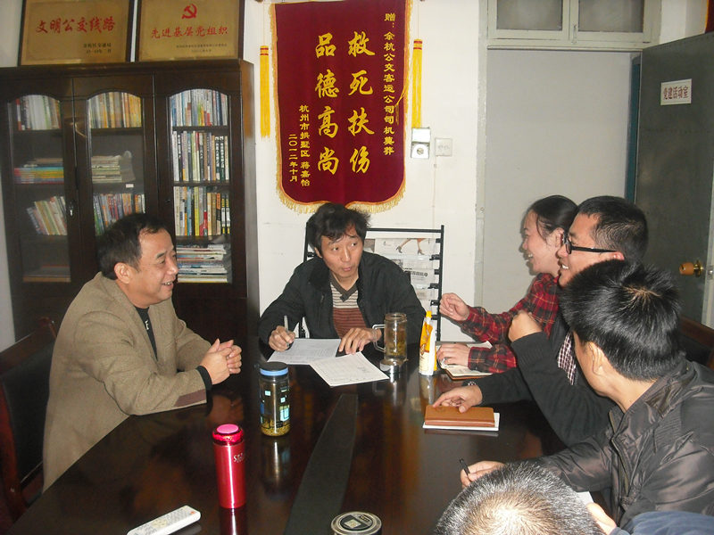 10月29、30日,錢江晚報(bào)以《找人的速度緣何趕不上走人的腳步》為題連續(xù)兩天報(bào)道了公交司機(jī)招工難、勞動(dòng)強(qiáng)度大等問題,晚報(bào)的報(bào)導(dǎo)使乘客了解到公交司機(jī)工作的辛苦與心酸,對(duì)廣大司機(jī)來(lái)說是一種溫暖與安慰。借用此次報(bào)道的契機(jī),余杭公交二車隊(duì)黨支部開展一次以“關(guān)心關(guān)愛司機(jī),溫暖員工心靈”為主題的黨員討論活動(dòng),活動(dòng)圍繞如何合理改善班型、降低勞動(dòng)強(qiáng)度、發(fā)揮黨員志愿分隊(duì)等問題展開了熱烈的討論,黨員們建議可以調(diào)整一部分身體素質(zhì)較差司機(jī)的工作線路;加強(qiáng)黨員與群眾的結(jié)對(duì),照顧生活中有困難的司機(jī);志愿小分隊(duì)要及時(shí)了解車隊(duì)員工情況,走訪慰問。這次討論會(huì)讓員工特別是一線司機(jī)感受到了大家庭的溫暖,并且也讓車隊(duì)黨組織深入了解了員工的訴求,為營(yíng)造和諧工作氛圍,拉近企業(yè)與員工的距離起到了積極的作用。
